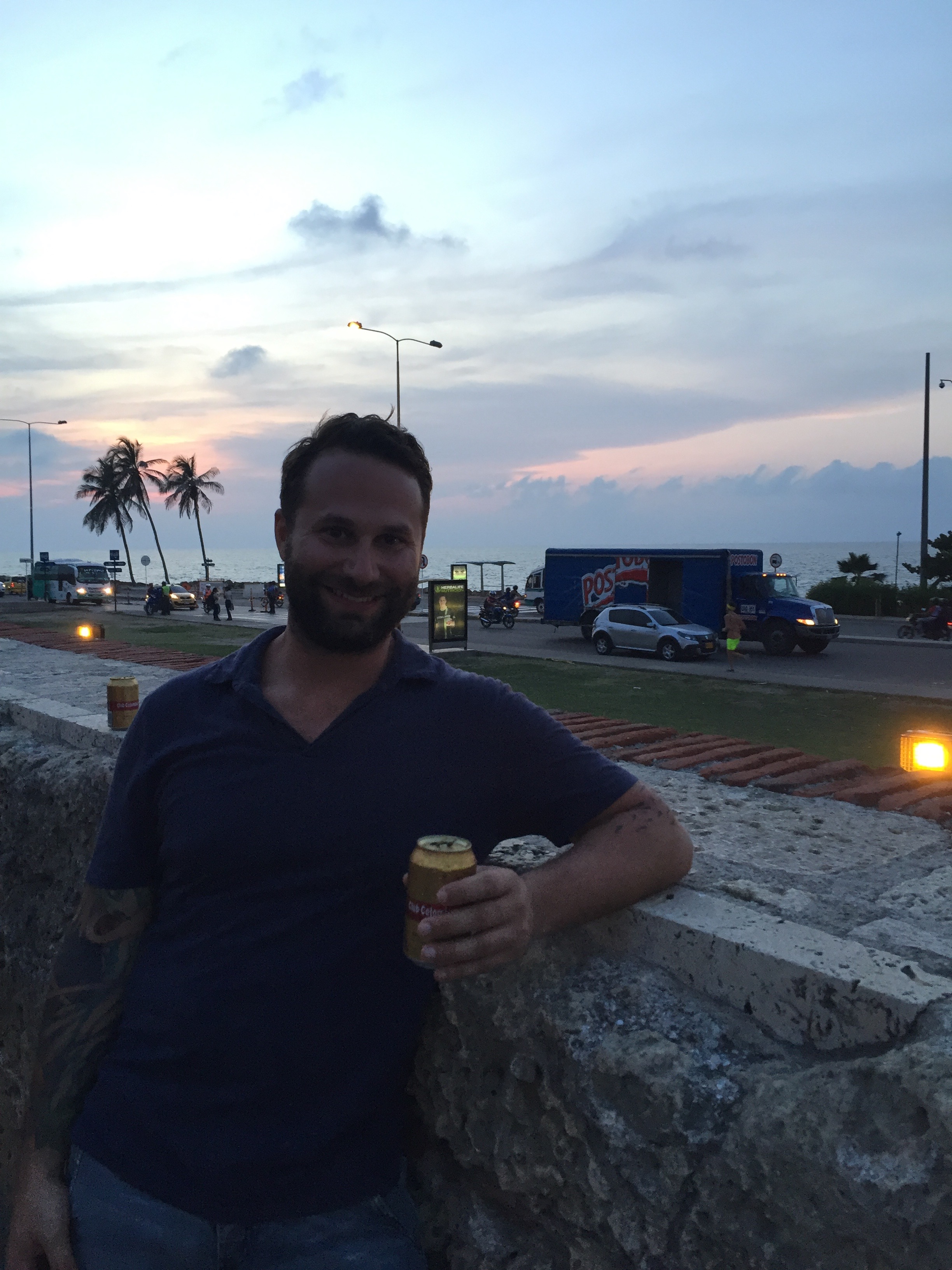 Background: The old town portion of Cartagena is surrounded by 20 or 30 foot high walls. Below, you can see me skillfully holding the wall up and drinking a Colombia beer. (PS: You can drink whilst walking the streets)